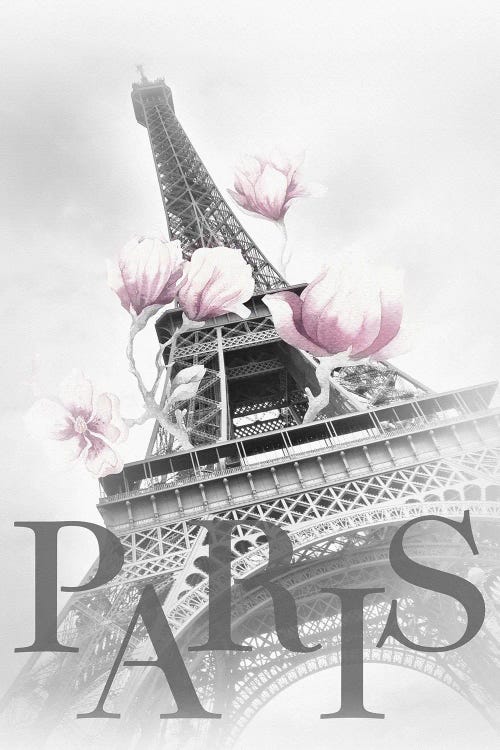 Paris Magnolia Eiffel Tower - Black And White - Pink
