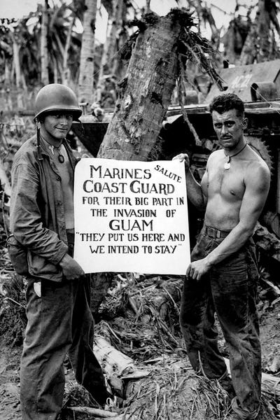 The US Marines Salute The US Coast Guard After The Battle For GuamStocktrek Images