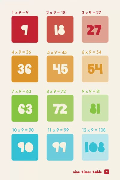 Square Times Tables - 9