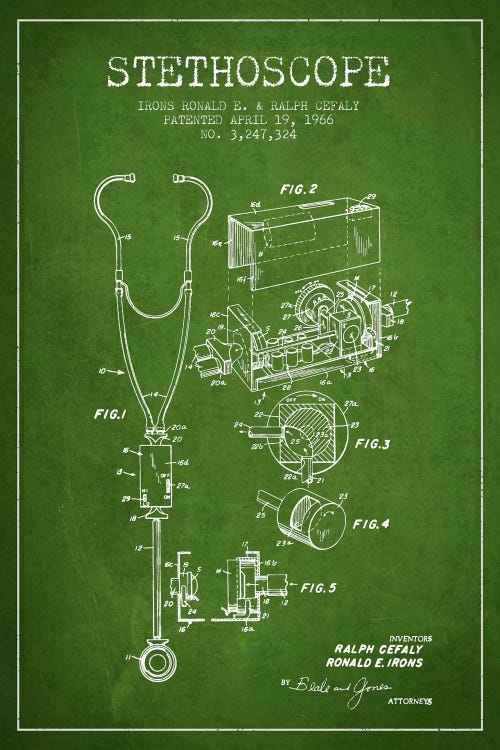 Stethoscope Green Patent Blueprint