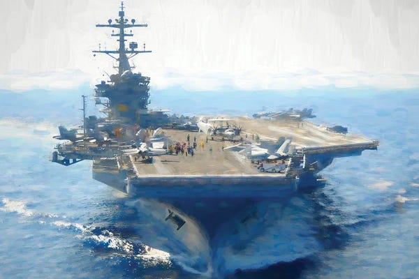American Aircraft Carrier In Watercolor