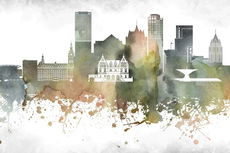 Milwaukee II Skyline In Watercolor Background