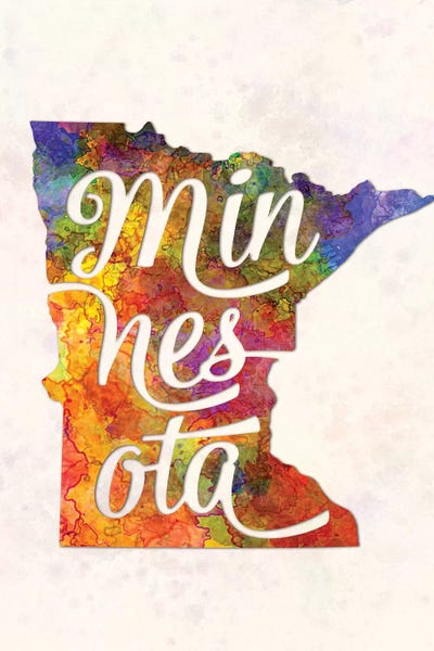 Minnesota US State In Watercolor Text Cut Out