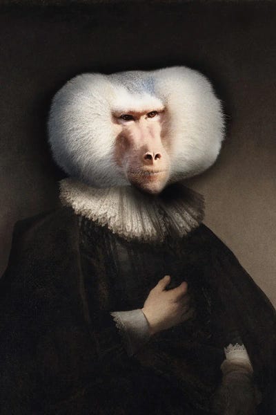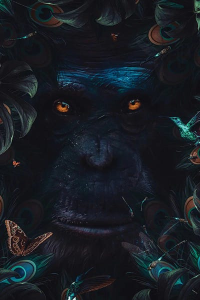 Monkey Portrait And Peacock Feathers