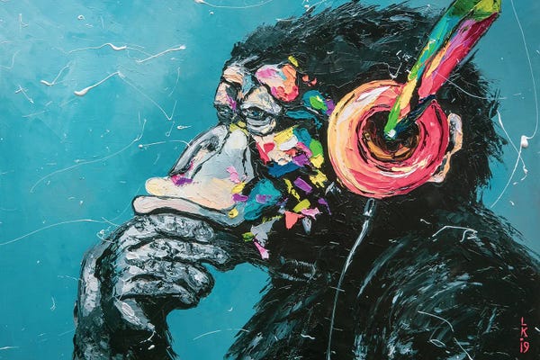 Monkey In A Lily Pond, Dreamy Watercolor Fantasy Landscape