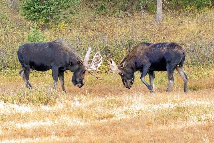 Alaska Moose Pair Of Males Confronting Each Other In The Fall, AlaskaMichael Quinton