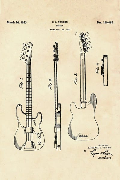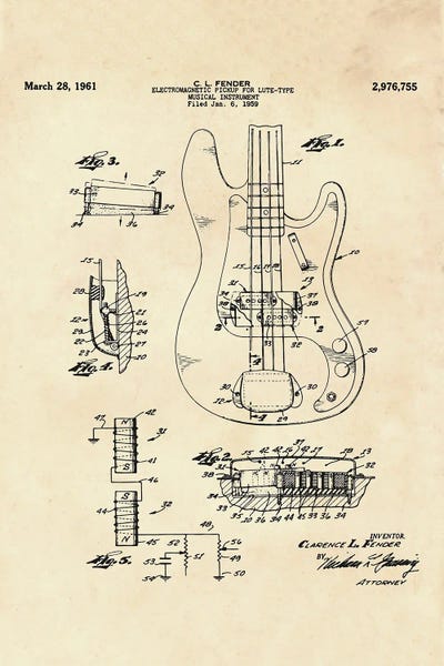 Fender Guitar Green Patent Blueprint