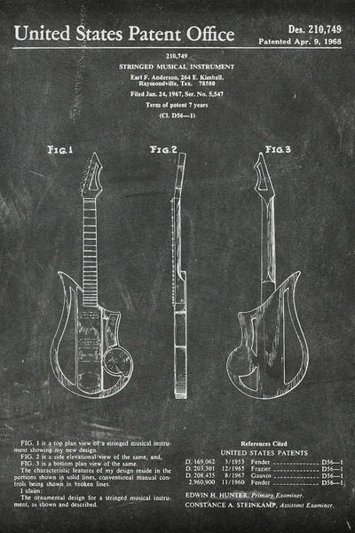 Gibson Eguitar Green Patent Blueprint