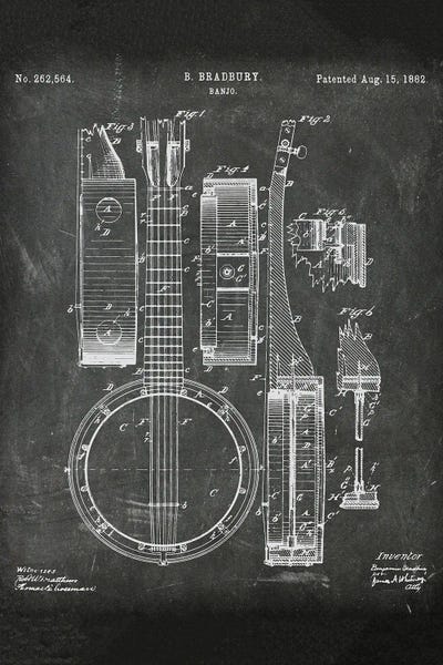 Isebell Banjo Vintage Patent Blueprint