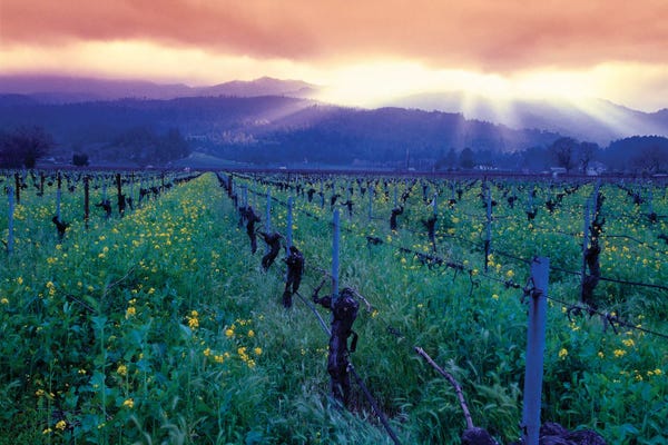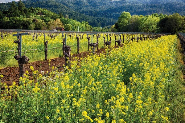 Yellow Mustard Blooming Between Rows Of Old Grapevines, Napa Valley, CaliforniaGeorge Oze