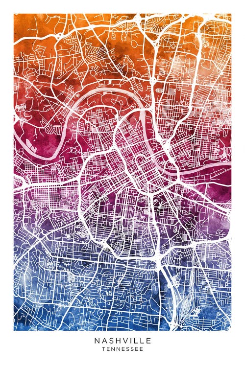 Nashville City Map Colorful Watercolor Style