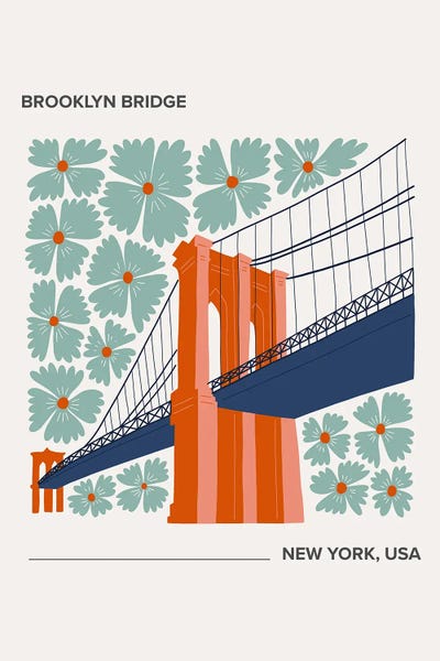 Brooklyn Bridge - New York, USA, Warm Colours Illustration Travel Poster