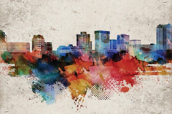 Norfolk City Map Colorful Watercolor Style
