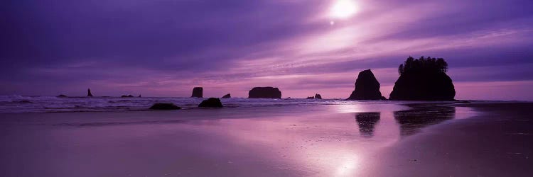 Silhouette of seastacks at sunset, Second Beach, Washington State, USAPanoramic Images