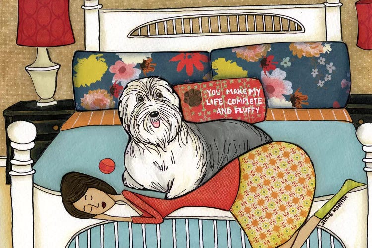 Old English Sheepdog Bobtail In Watercolor