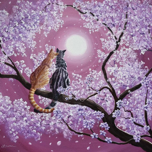 Orange And Gray Tabby Cats In Cherry Blossoms