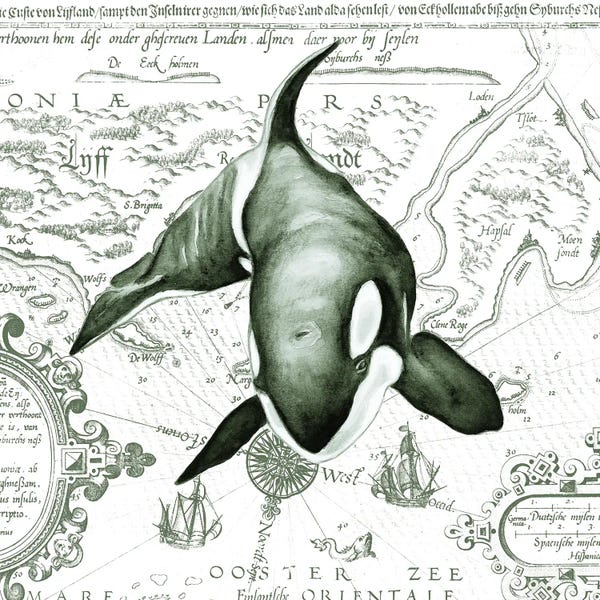 Orca Whale Vintage Map Green