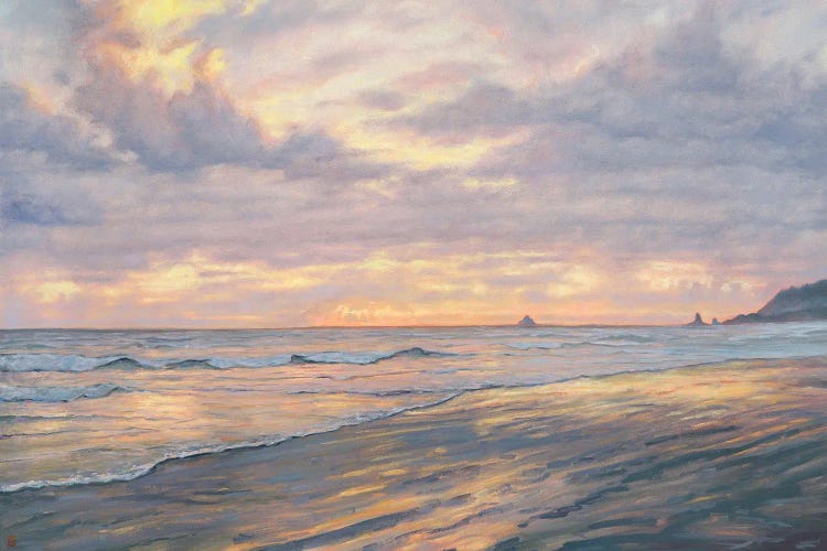 USA, Oregon, Oceanside Beach State Wayside. Sunset over Three Arch Rocks.John Barger
