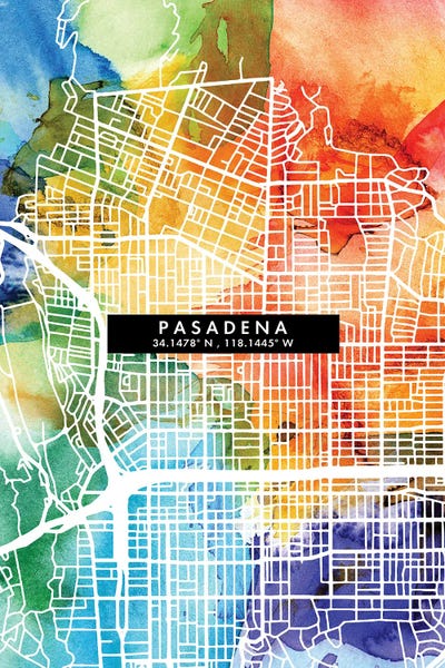 Pasadena, California City Map Colorful Watercolor Style