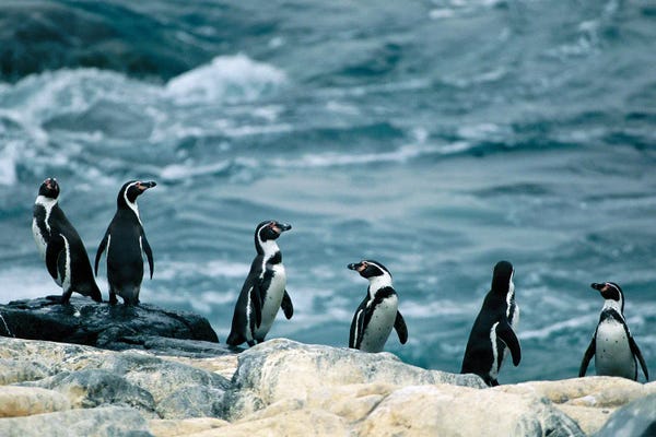 Humboldt Or Peruvian Penguins On A Rocky Shore