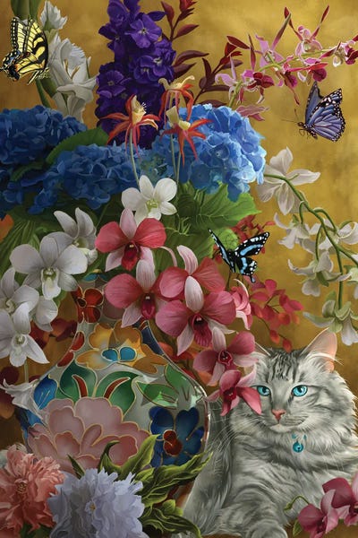 Gilded Cat And Flowers