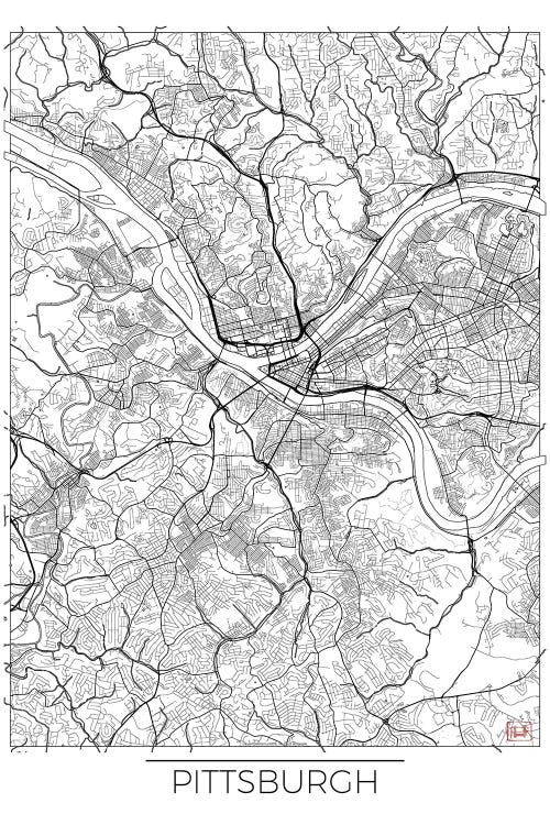 Pittsburgh Minimal Urban Blueprint Map