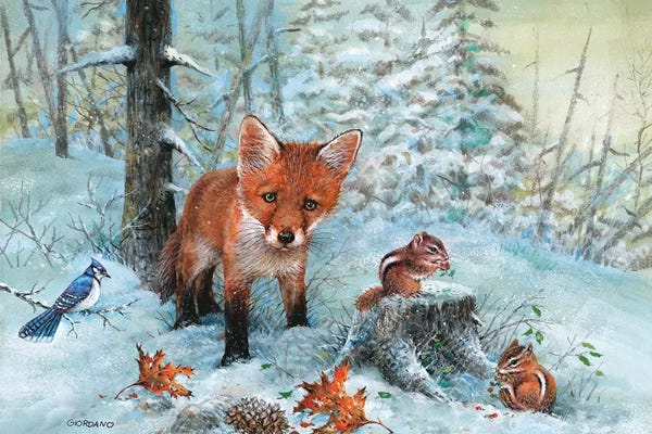 Red Fox And Squirell In Winter
