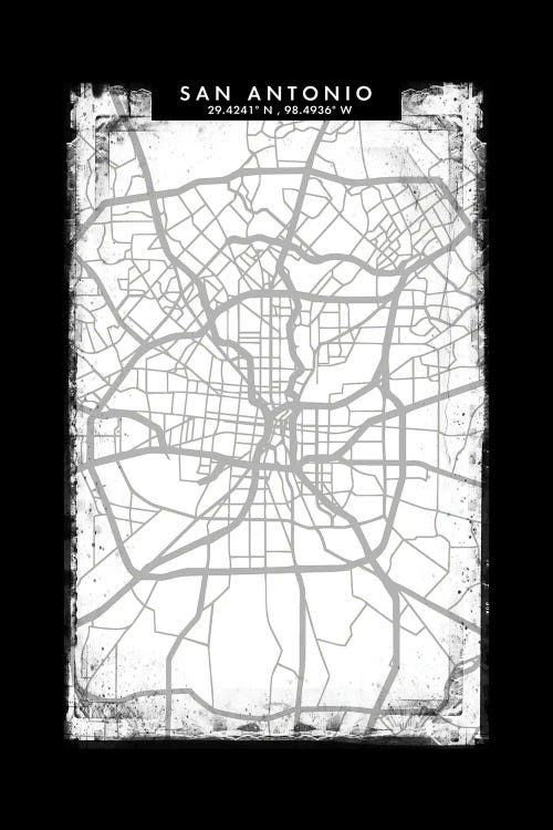 San Antonio City Map Black White Grey Style