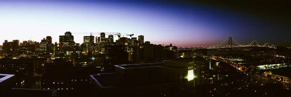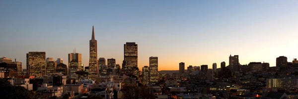 Buildings lit up at dusk, Telegraph Hill, San Francisco, California, USAPanoramic Images
