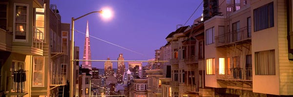 Buildings Lit Up At Dusk, Alamo Square, San Francisco, California, USAPanoramic Images