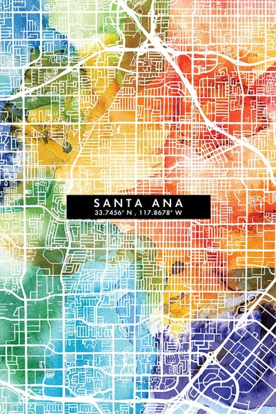 Santa Ana City Map Colorful Watercolor Style