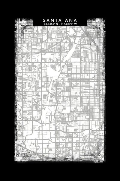 Santa Ana City Map Black White Grey Style