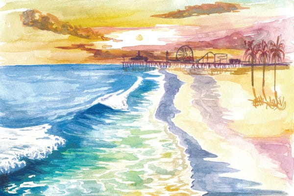Santa Monica California United States Travel IllustrationOlahoop Travel Posters