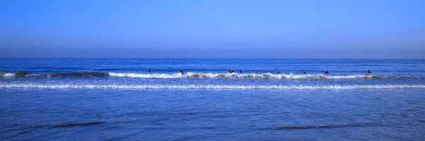 Surfers riding a wave in the sea, Santa Monica, Los Angeles County, California, USAPanoramic Images