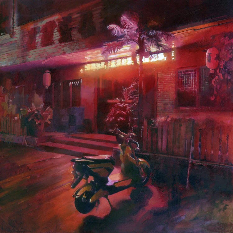Scooters And Bicycles Parked In A Street, Amsterdam, NetherlandsPanoramic Images