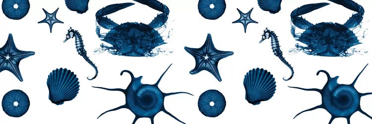 Coastal Shell Diptych with Border Navy