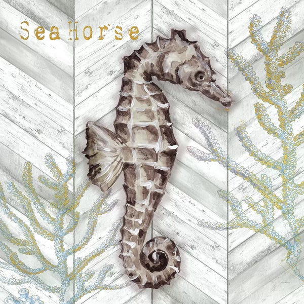 Gray Gold Chevron Seahorse