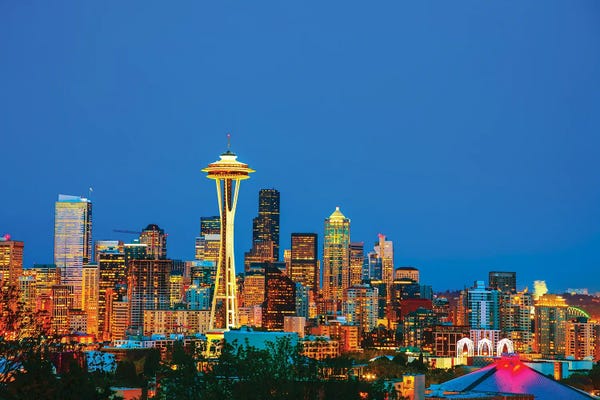 City skyline at dusk, Seattle, King County, Washington State, USAPanoramic Images