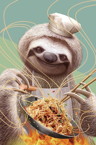 Sloth Cooking Fried Noodles