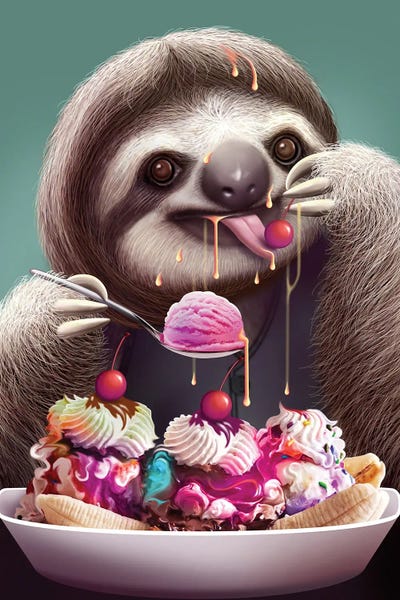 Sloth Enjoying Ice Cream