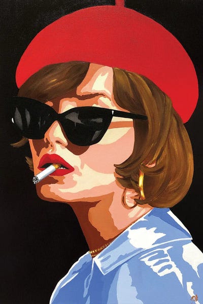 Girl Smoking A Cigarette Blue On Red