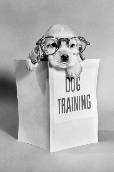 1950s Cocker Spaniel Puppy Wearing Glasses With Paws Over Dog Training ManualVintage Images