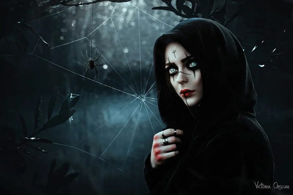 Two People And Big Spider Web Fantasy Art