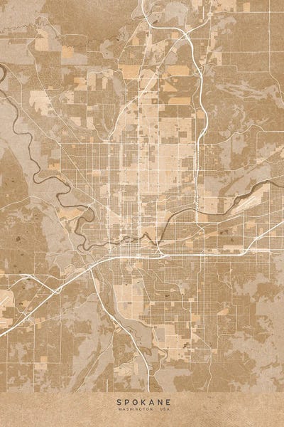 Map Of Spokane (Wa, USA) In Sepia Vintage Style