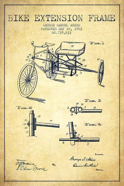 G.W. Akers Bike Extension Frame Patent Sketch (Vintage)