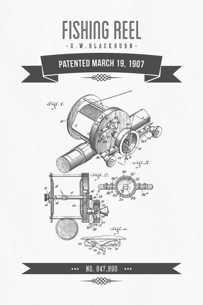 G.W. Blackburn Fishing Reel Patent Sketch Retro (Charcoal)