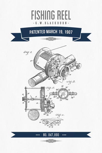 G.W. Blackburn Fishing Reel Patent Sketch Retro (Navy Blue)