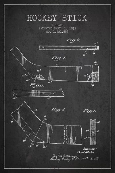 Hockey Stick Charcoal Patent Blueprint