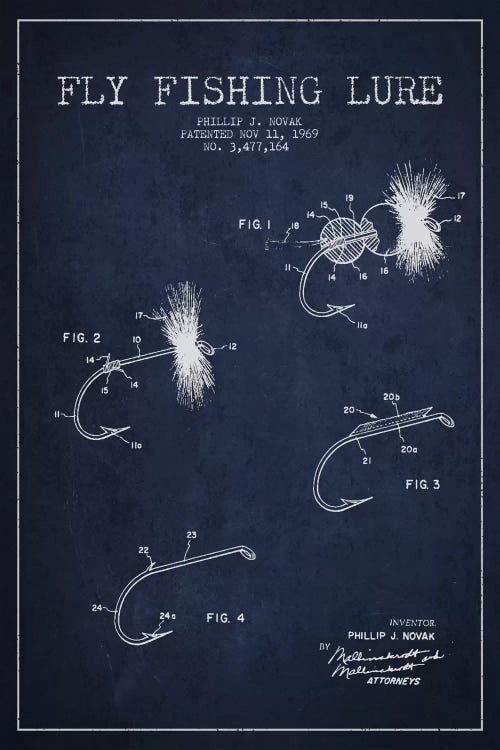 Fishing Tackle Navy Blue Patent Blueprint