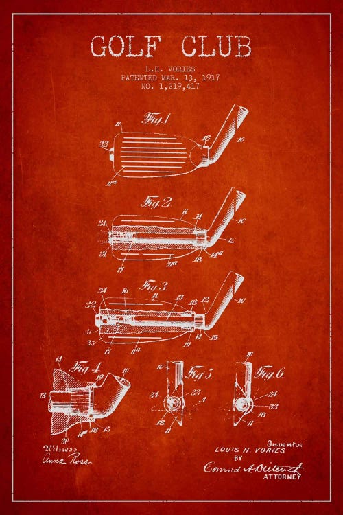 Golf Club Red Patent Blueprint